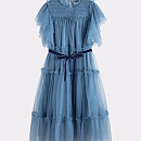 Для нежного, сказочного образа подойдет платье Carolina в оттенке dusty blue — легкое, воздушное, будто дышащее морозным утренним светом. Это тот случай, когда фактура и цвет делают девочку похожей на героиню зимней сказки. В этой модели есть и другие оттенки — мягкий розовый, насыщенный красный — каждый работает в кадре по-своему: розовый создает настроение нежности, красный смотрится празднично и уверенно.