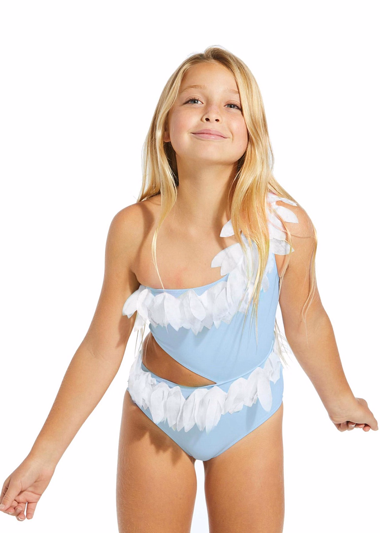Купальник голубой с белыми декоративными украшениями Stella Cove