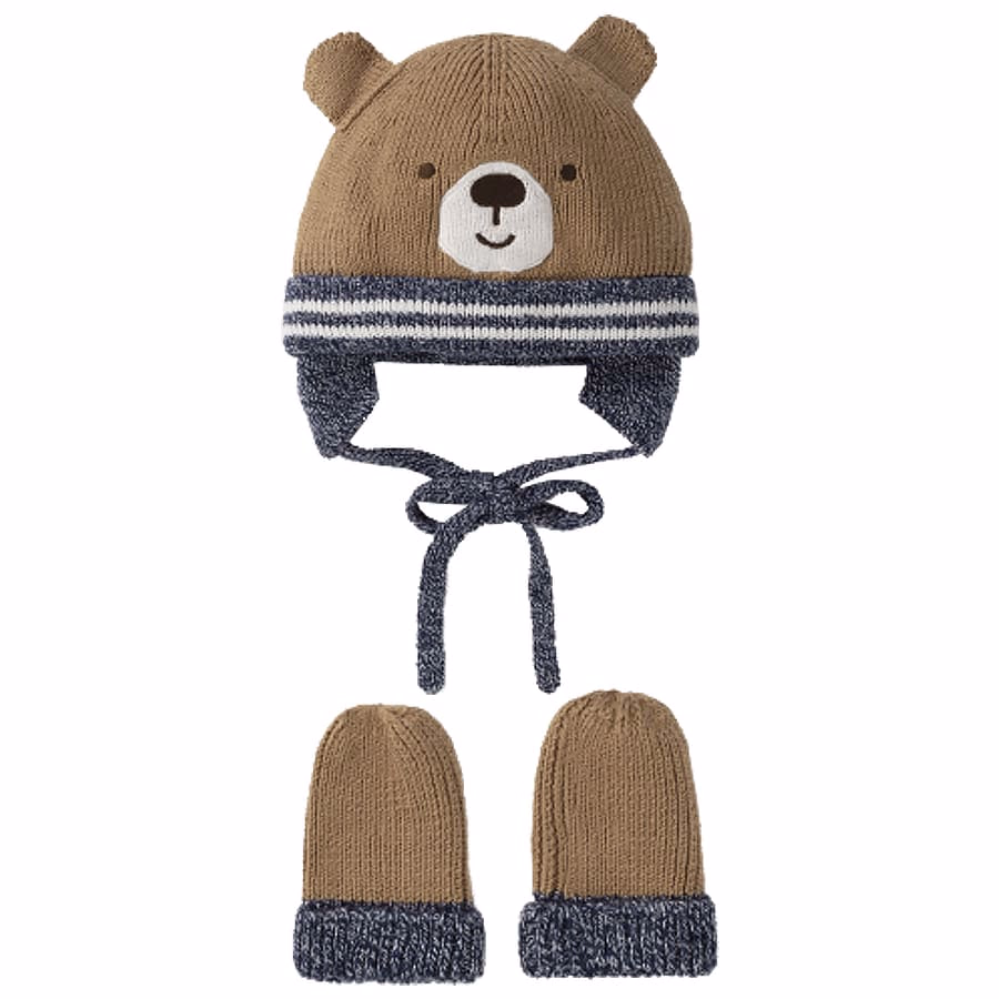 - Шапка с медведем и варежки коричневого цвета Mayoral