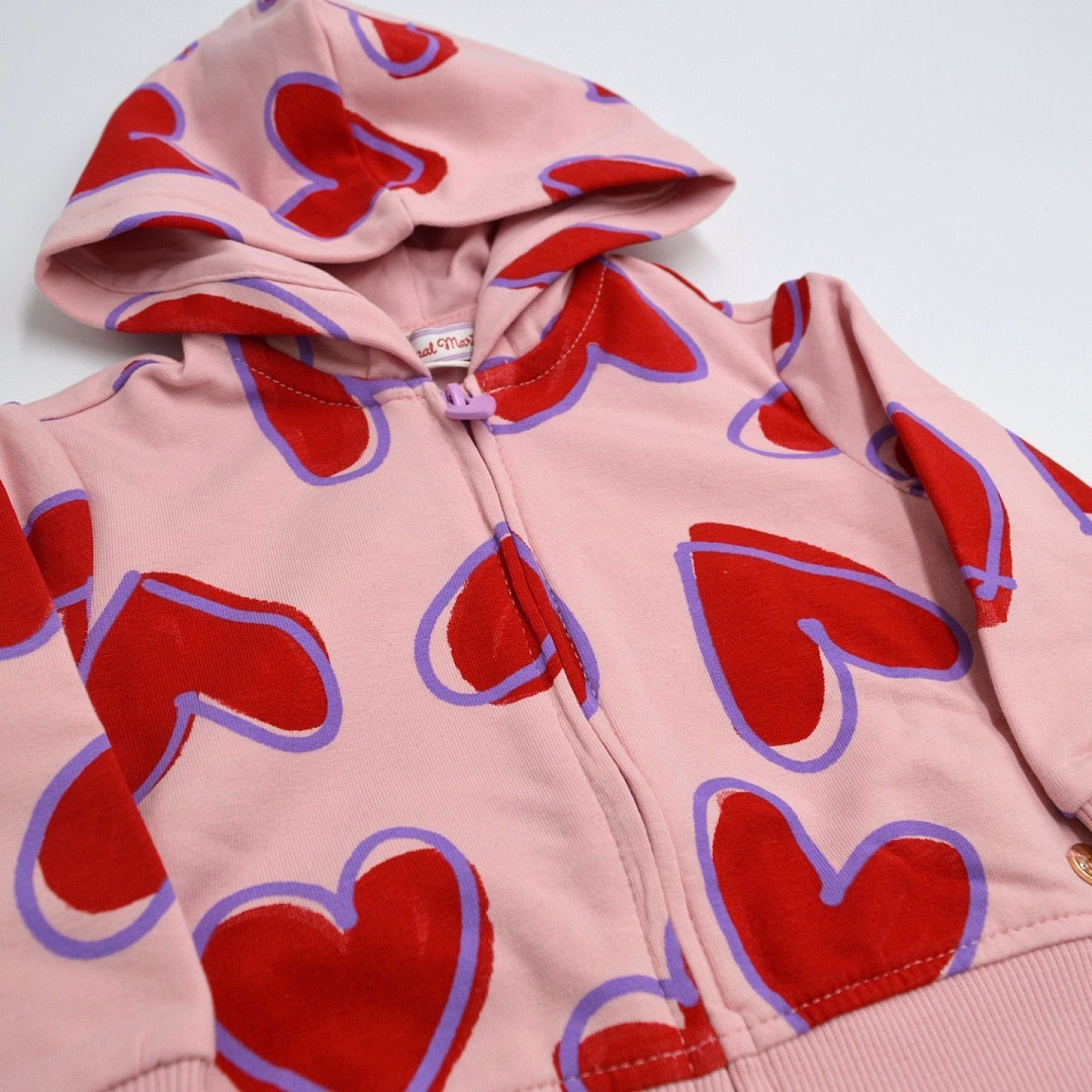 Толстовка на молнии розовая с красными сердечками Original marines