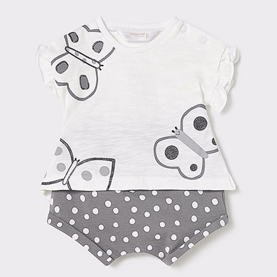 - Комплект одежды: 2 футболки и 2 шорт с бабочками Mayoral